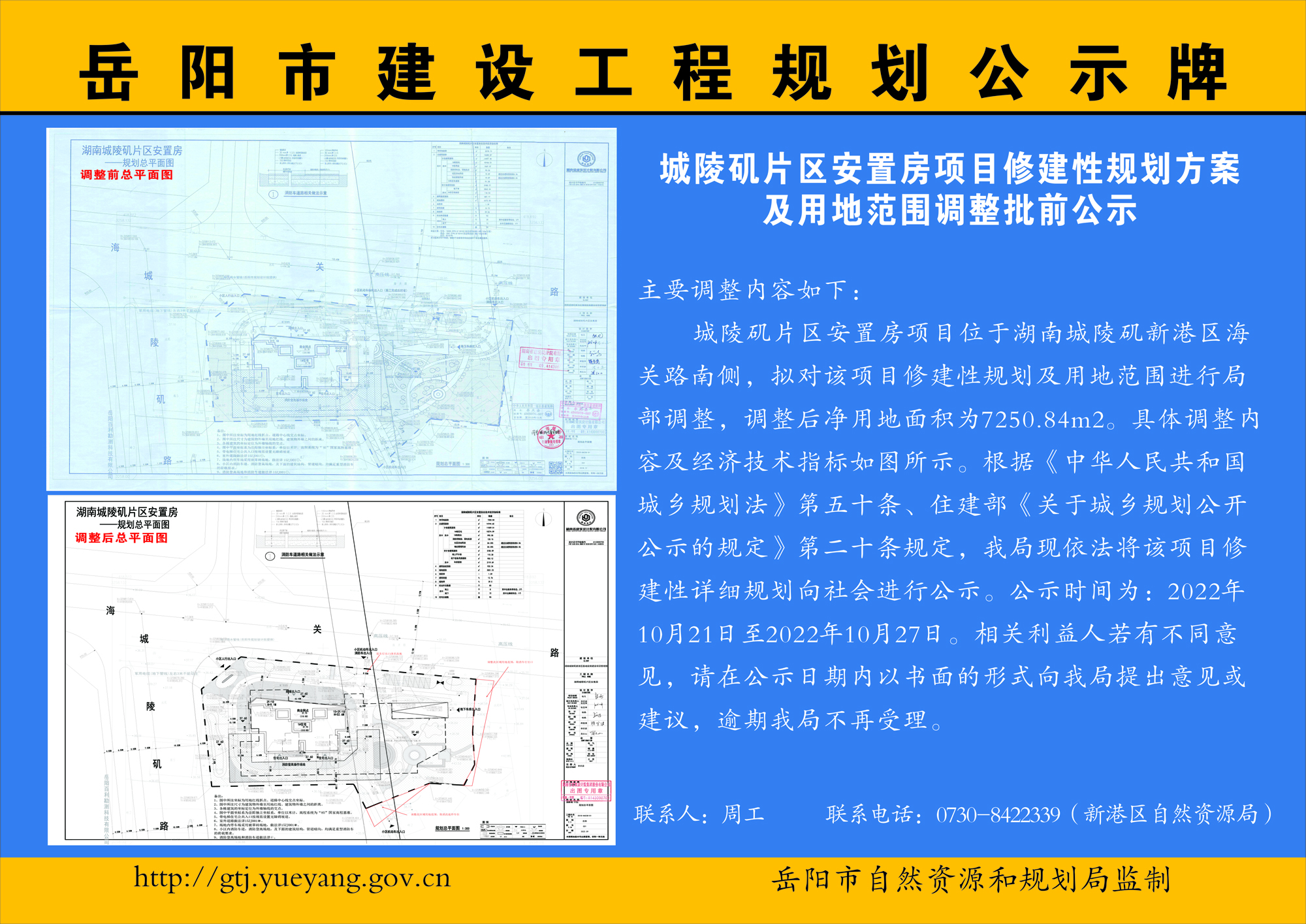 城陵矶片区安置房项目修建性规划方案及用地范围调整批前公示