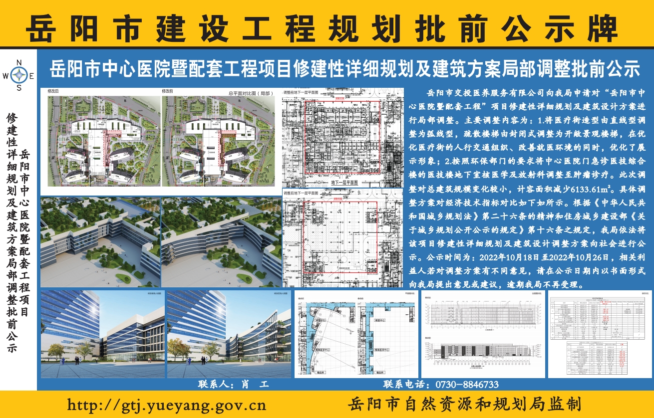 岳阳市中心医院暨配套工程项目修建性详细规划及建筑设计方案调整公示