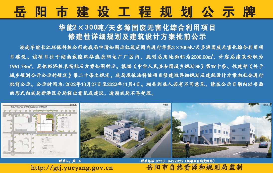 华能2×300吨/天多源固废无害化综合利用项目修建性详细规划及建筑设计方案批前公示