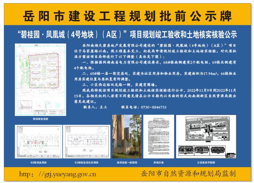 “碧桂园.凤凰城(4号地块)(A区)”项目规划竣工验收和土地核实核验公示