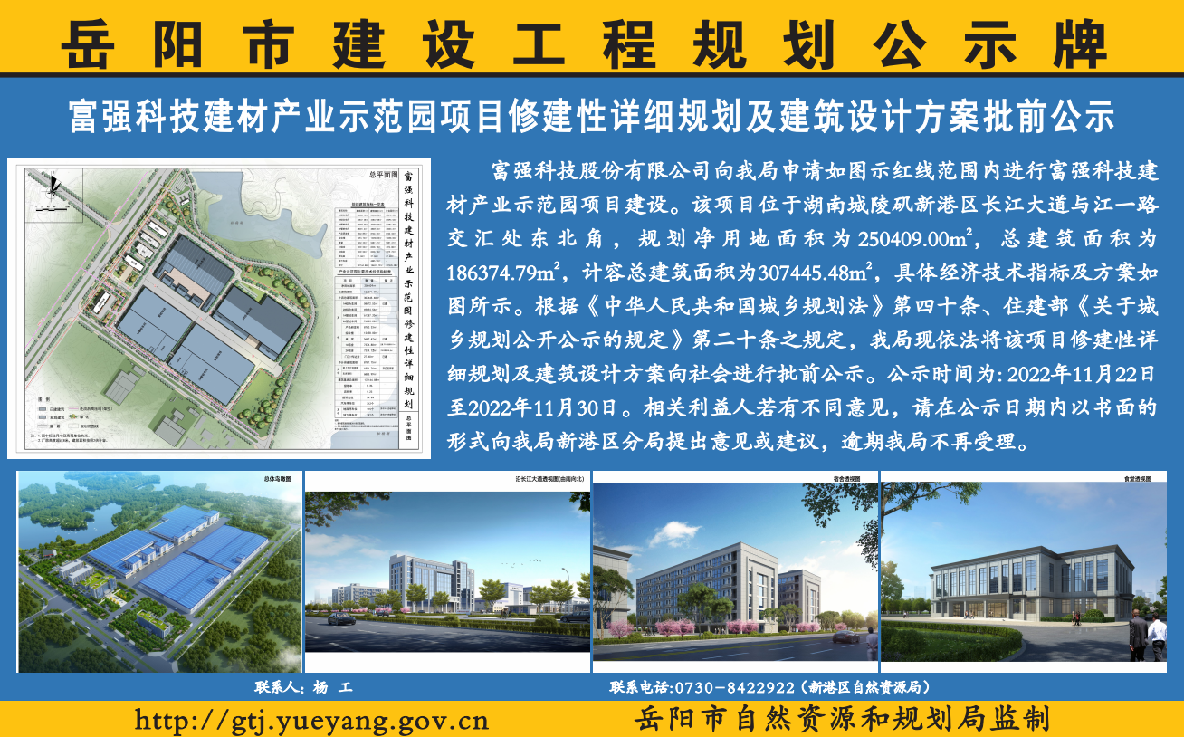 富强科技建材产业示范园项目修建性详细规划及建筑设计方案批前公示