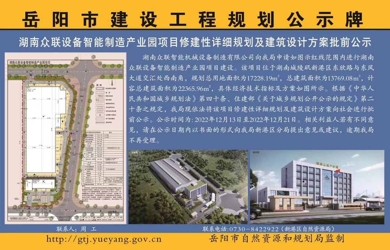 湖南众联设备智能制造产业园项目修建性详细规划及建筑设计方案批前公示