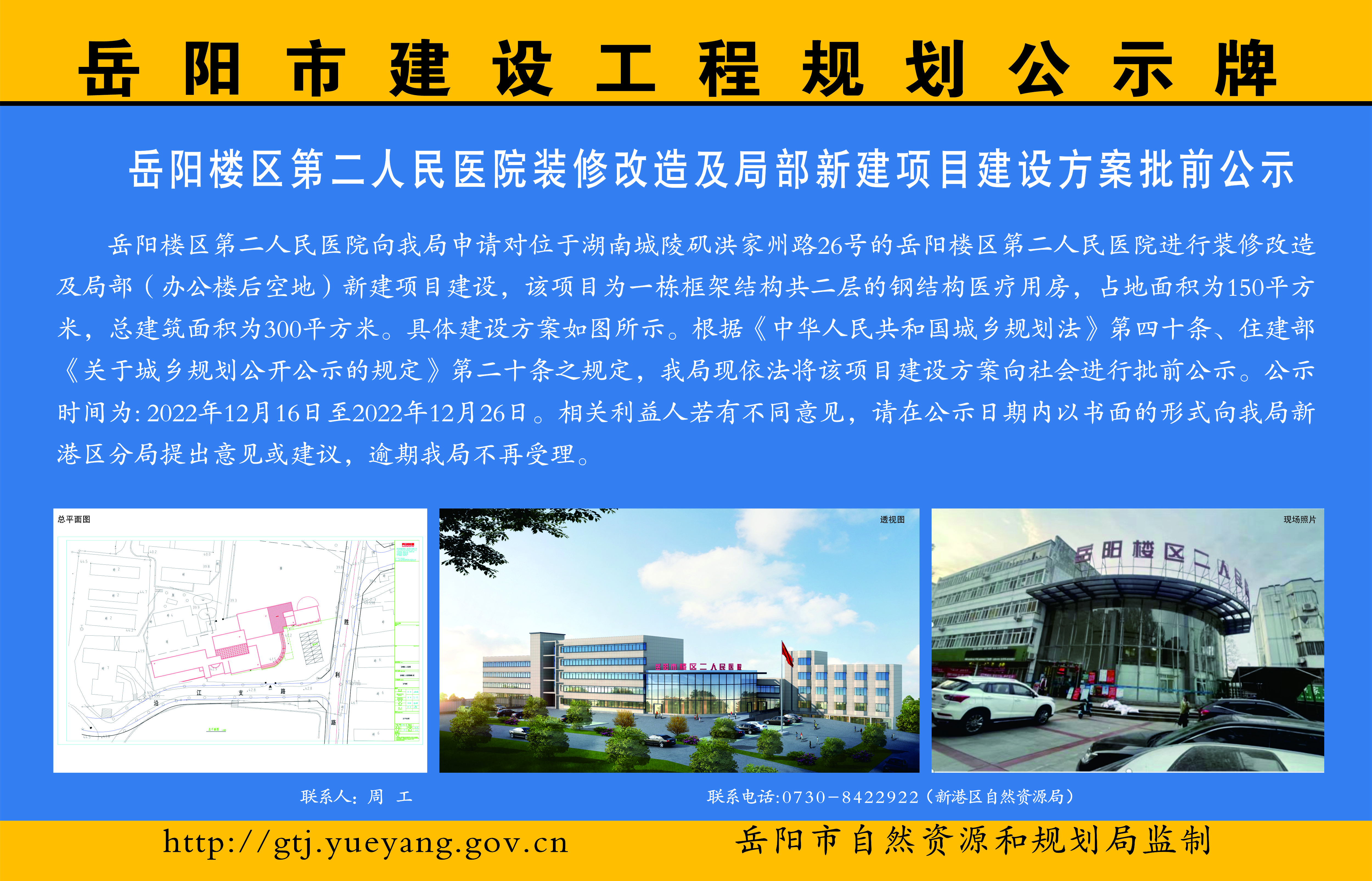 岳阳楼区第二人民医院装修改造及局部新建项目建设方案批前公示