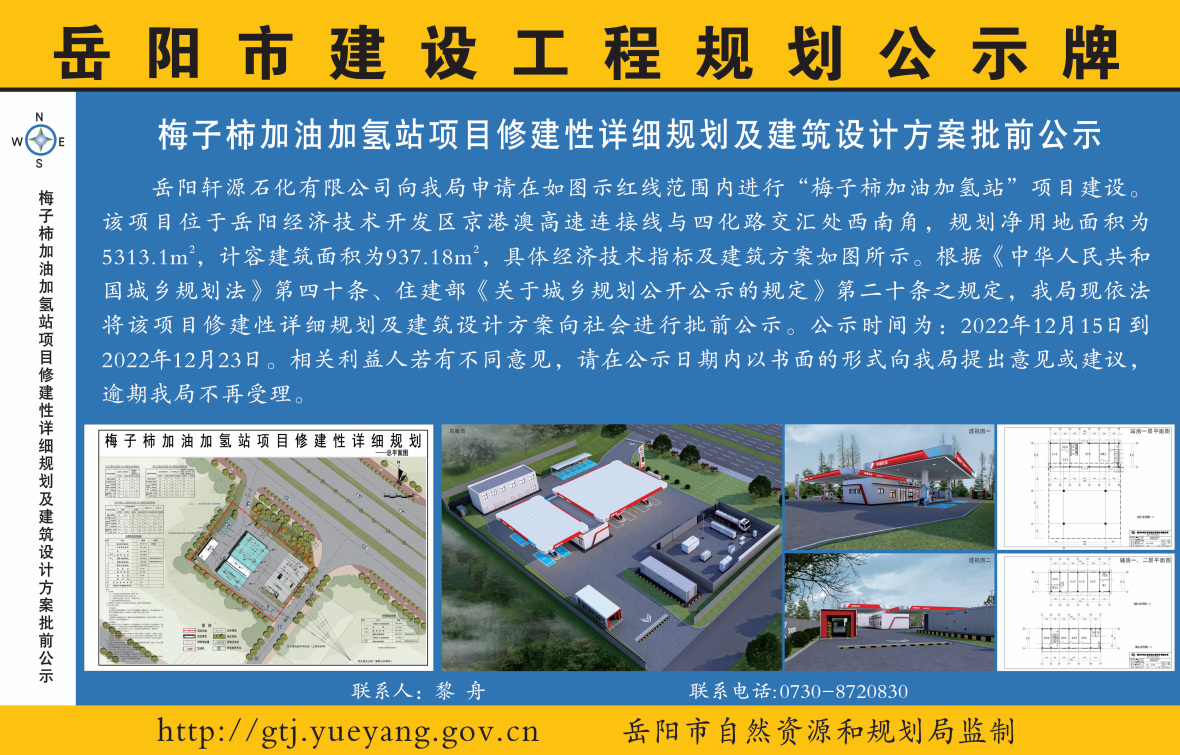 梅子柿加油加氢站项目修建性详细规划及建筑设计方案批前公示