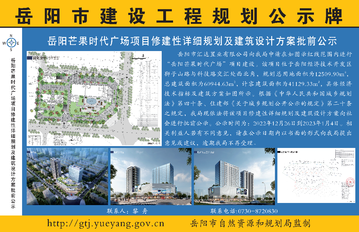 岳阳芒果时代广场项目修建性详细规划及建筑设计方案批前公示