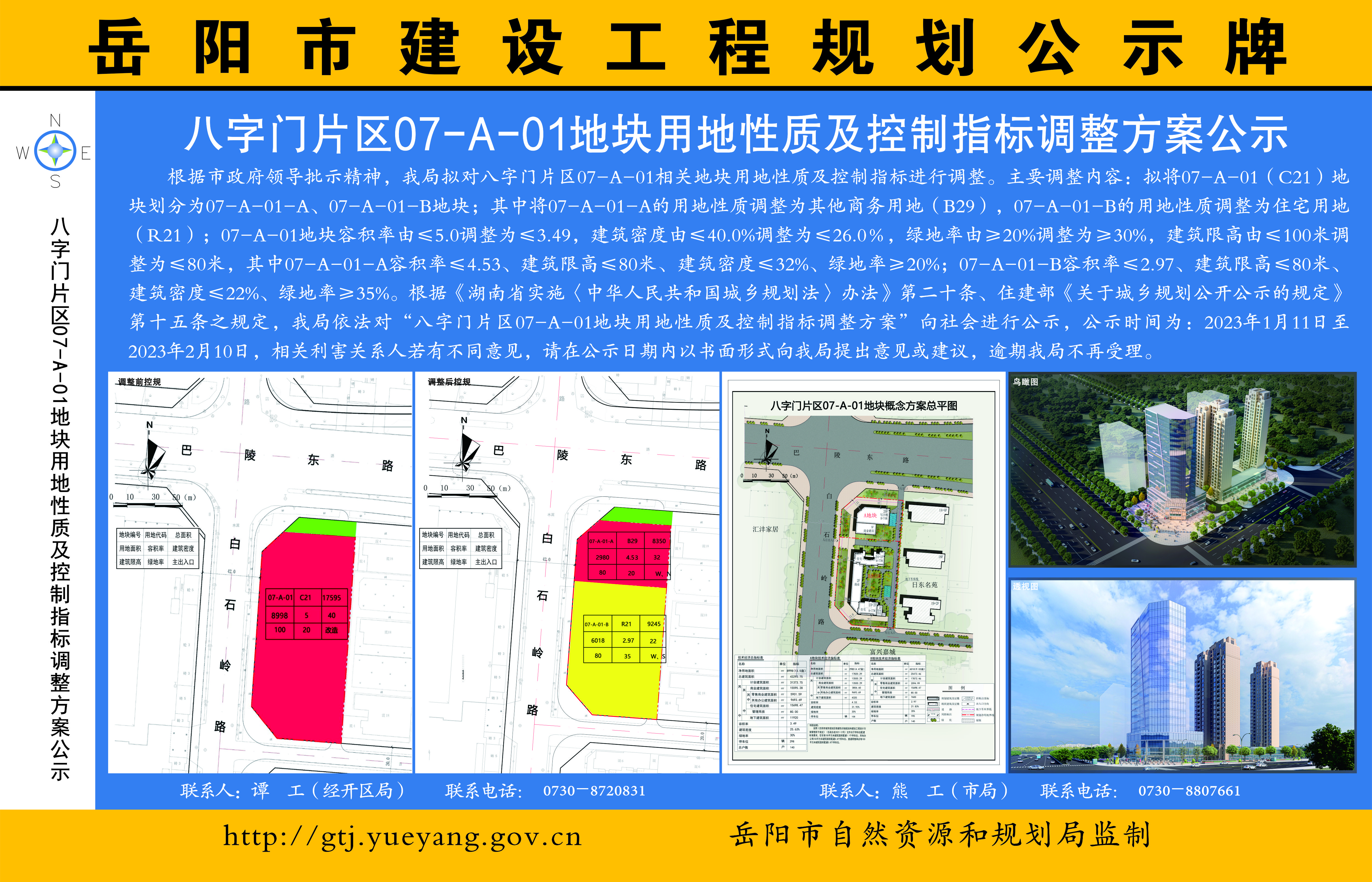 八字门片区07-A-01地块用地性质及控制指标调整方案公示