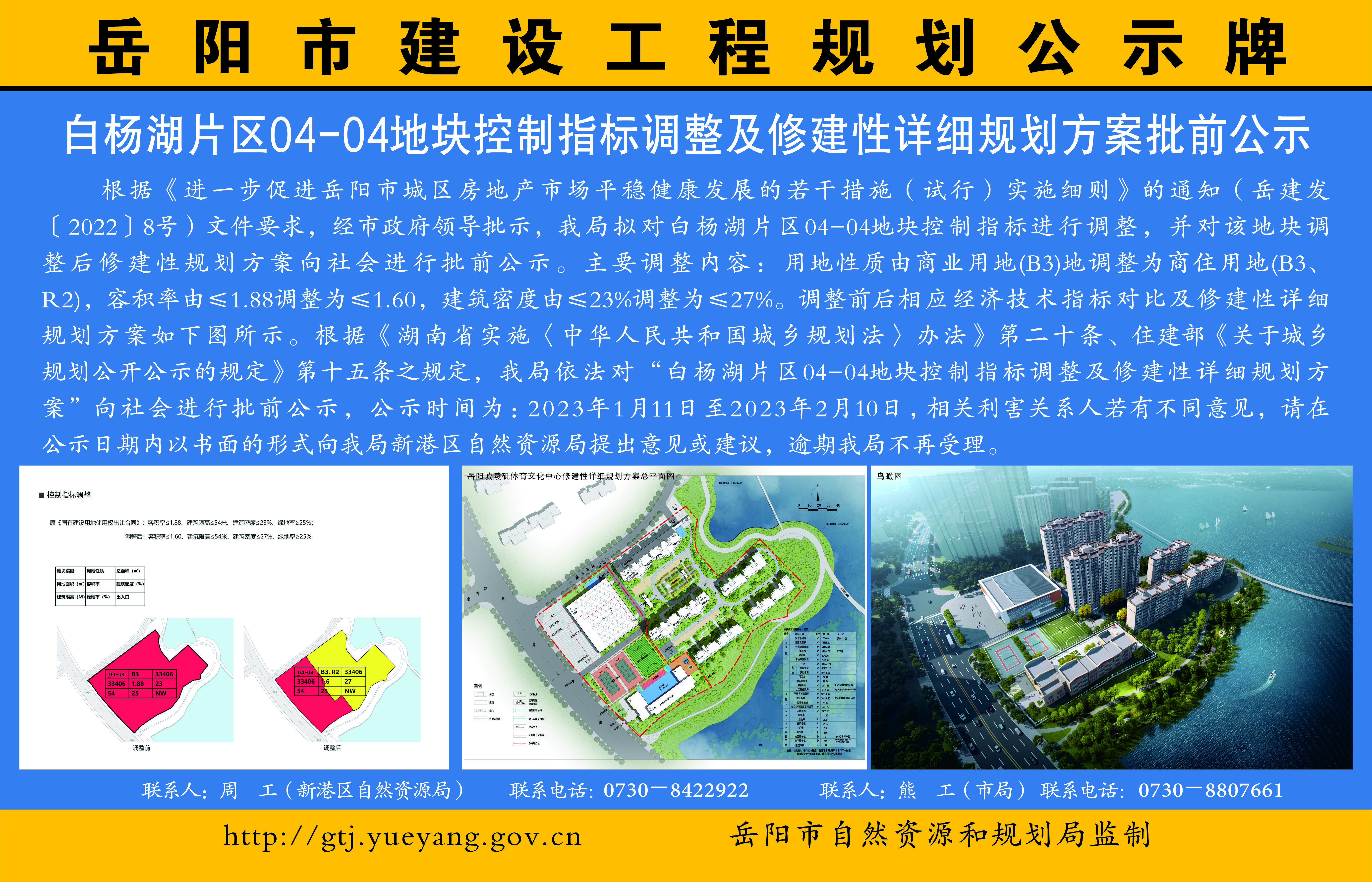 白杨湖片区04-04地块控制指标调整及修建性详细规划方案批前公示