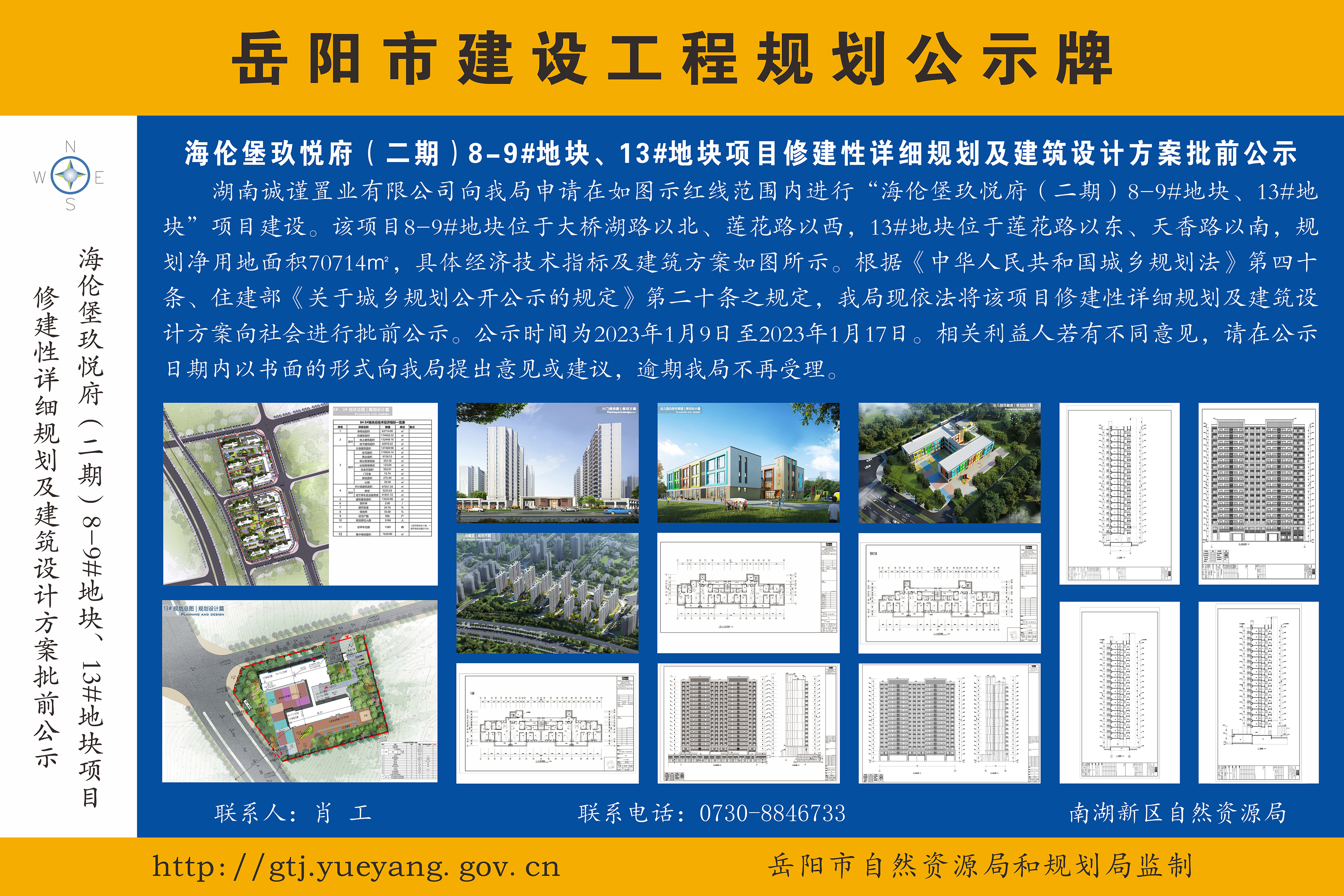海伦堡.玖悦府(二期)8-9#地块、13#地块项目修建性详细规划及建筑设计方案批前公示