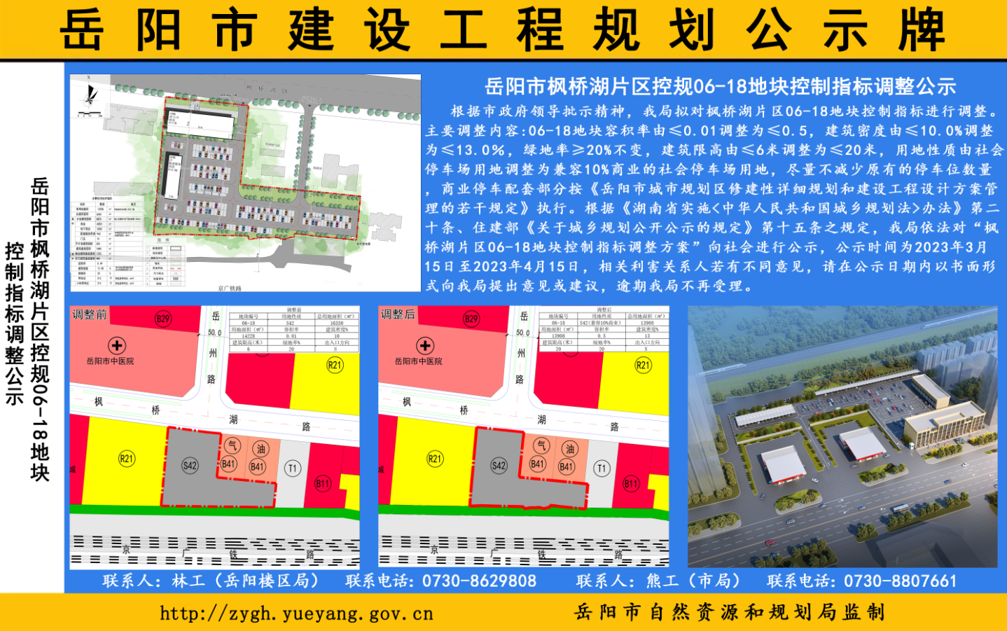岳阳市枫桥湖片区控规06-18地块控制指标调整公示