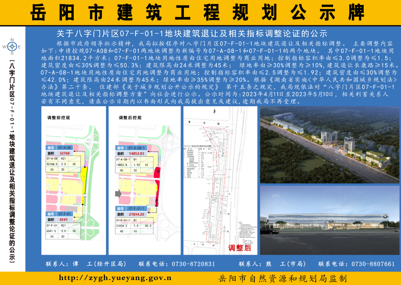 关于八字门片区07-F-01-1地块建筑退让及相关指标调整论证的公示