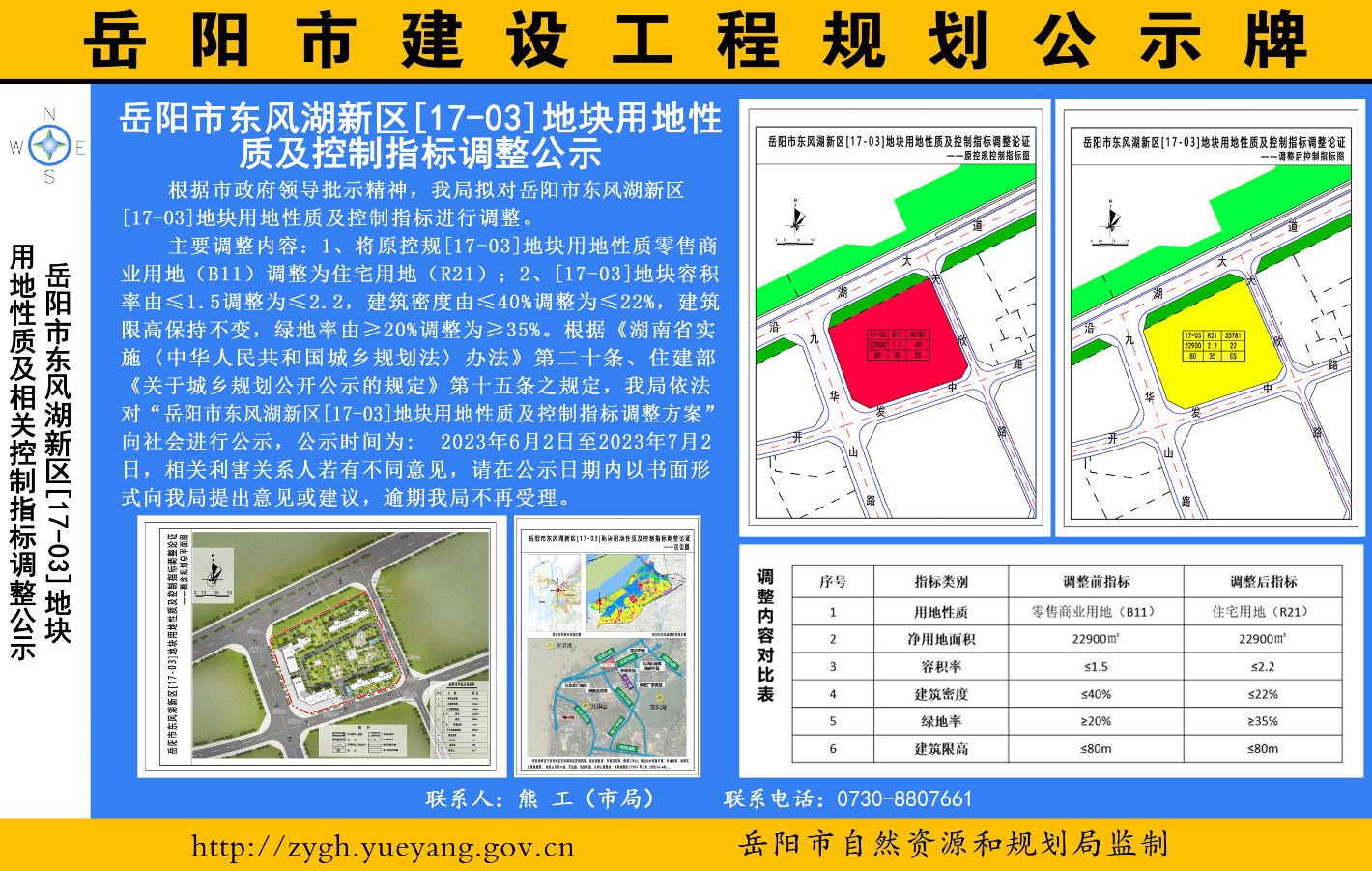 岳阳市东风湖新区【17-03】地块用地性质及控制指标调整公示