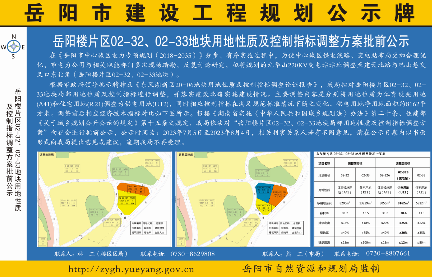 岳阳楼片区02-32、02-33地块用地性质及控制指标调整方案公示