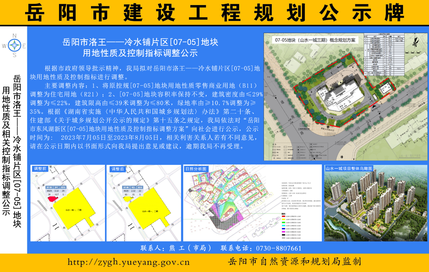岳阳市洛王—冷水铺片区【07-05】地块用地性质及控制指标调整公示
