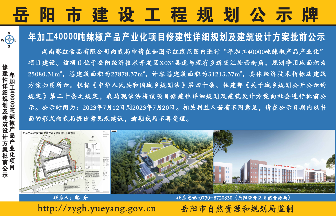 年加工40000吨辣椒产品产业化项目修建性详细规划及建筑设计方案批前公示