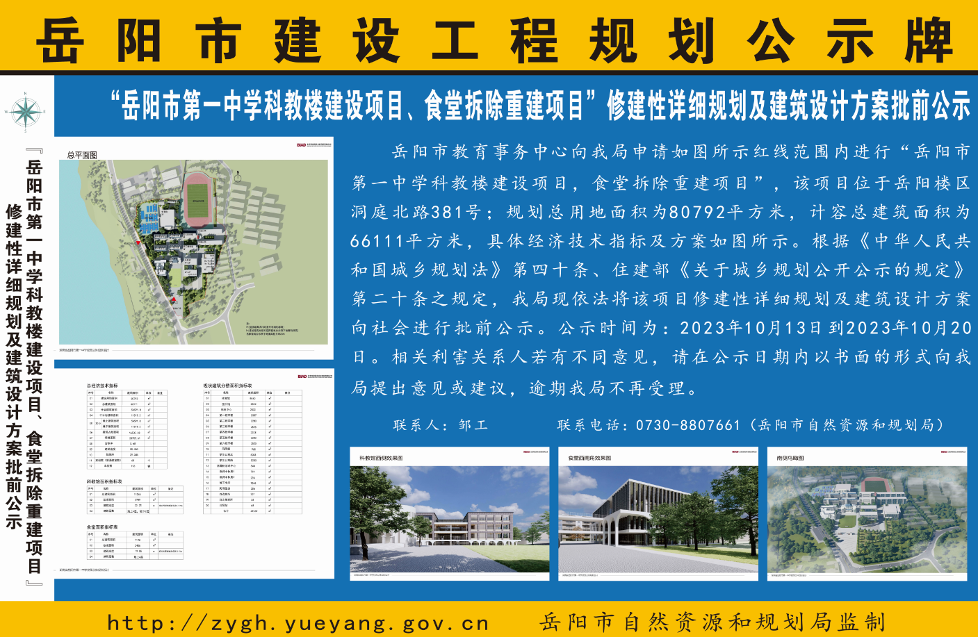 “岳阳市第一中学科教楼建设项目、食堂拆除重建项目”修建性详细规划及建筑设计方案批前公示