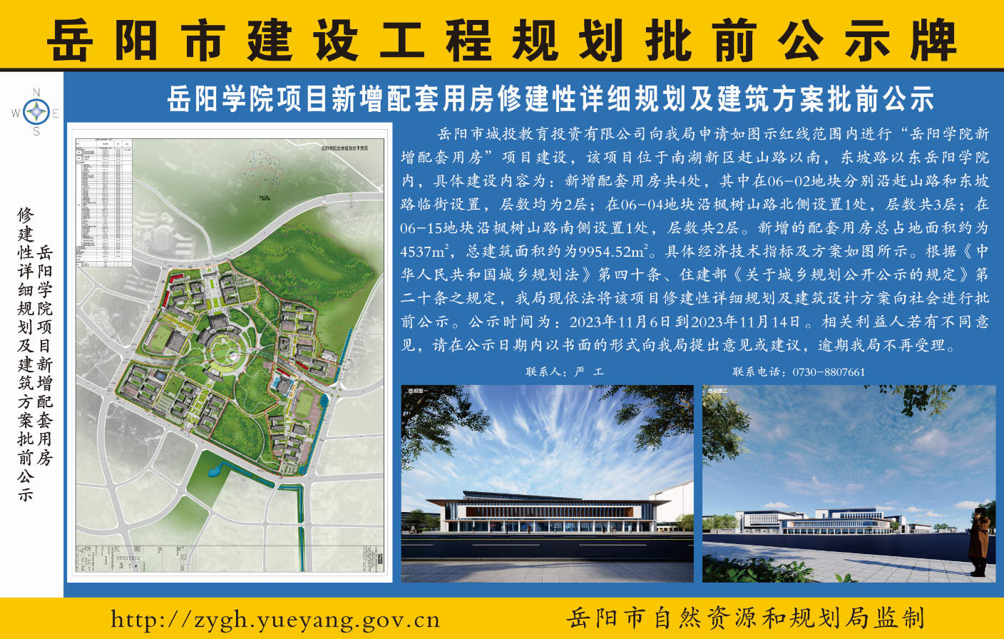岳阳学院项目新增配套用房修建性详细规划及建筑方案批前公示