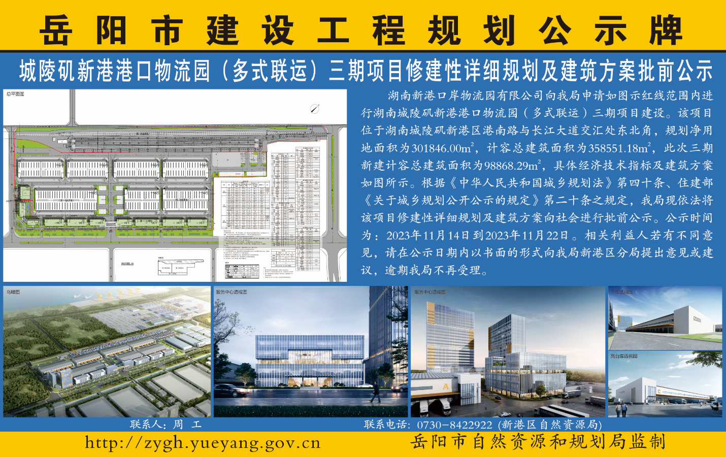 城陵矶新港港口物流园(多式联运)三期项目修建性详细规划及建筑方案批前公示