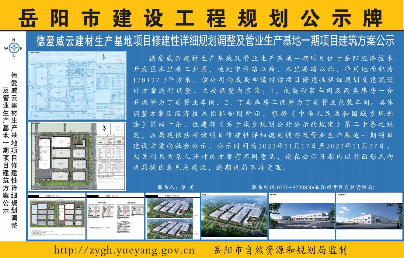 德爱威云建材生产基地项目修建性详细规划调整及管业生产基地项目一期建筑方案公示