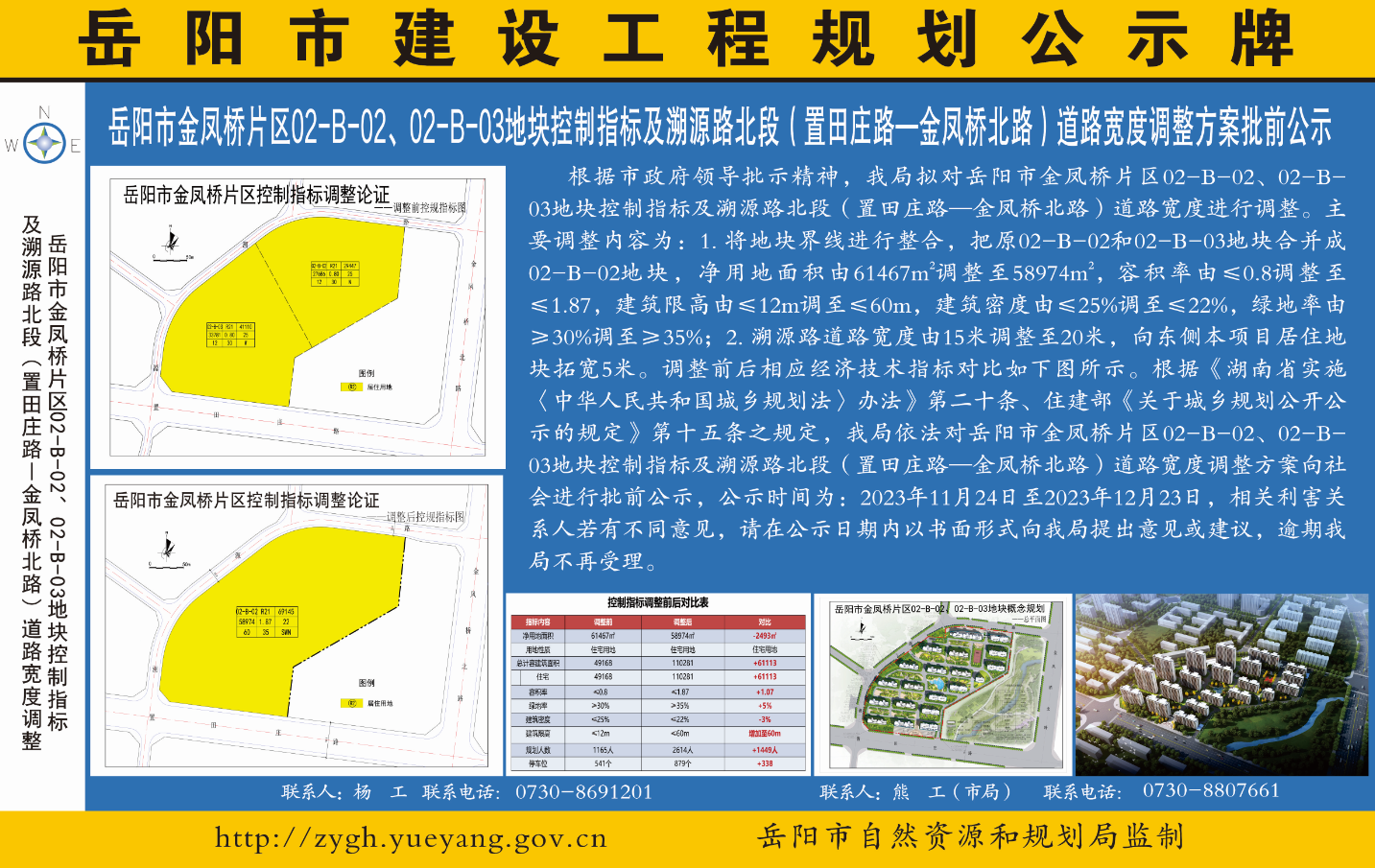 岳阳市金凤桥片区02-B-02、02-B-03地块控制指标及溯源路北段(置田庄路-金凤桥北路)道路宽度调整方案批前公示