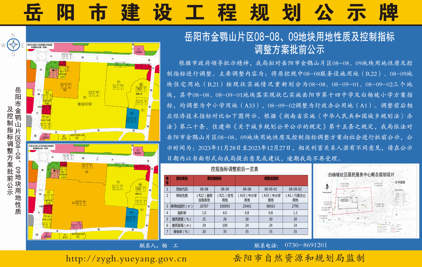 岳阳市金鹗山片区08-08、09地块用地性质及相关控制指标调整方案批前公示