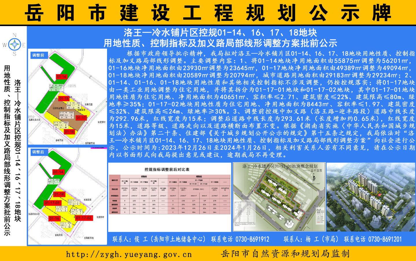 洛王—冷水铺片区控规01-14、16、17、18地块用地性质、相关控制指标及加义路局部线形调整论证方案批前公示