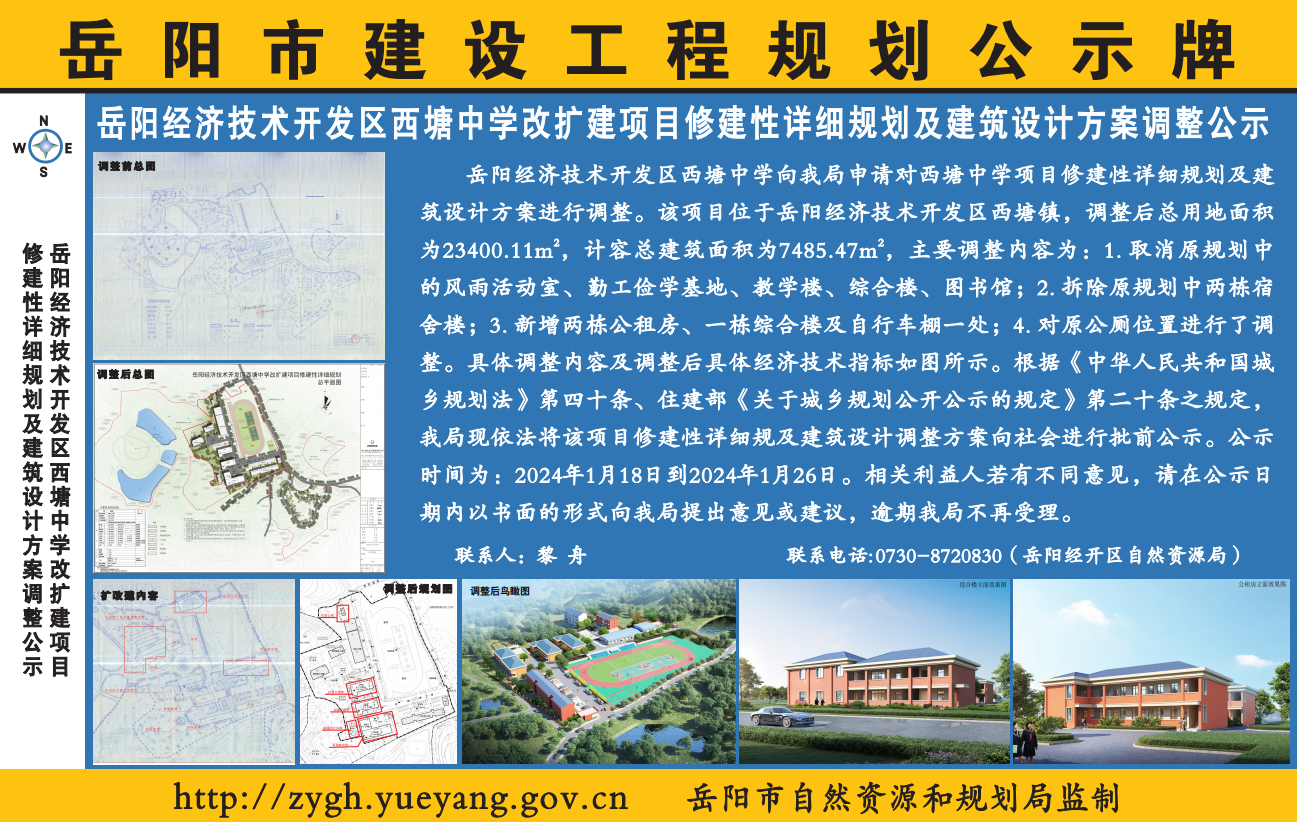 岳阳经济技术开发区西塘中学改扩建项目修建性详细规划及建筑设计方案调整公示