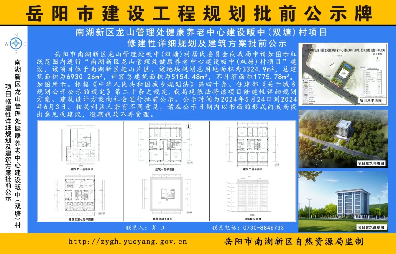 南湖新区龙山管理处健康养老中心建设畈中(双塘)村项目修建性详细规划及建筑方案批前公示
