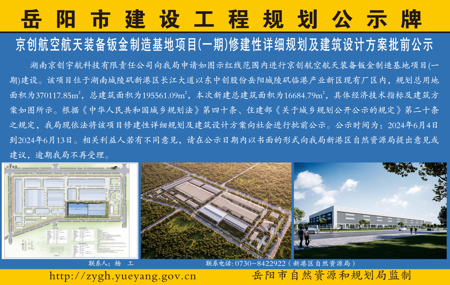 京创航空航天装备钣金制造基地项目(一期)修建性详细规划及建筑设计方案批前公示