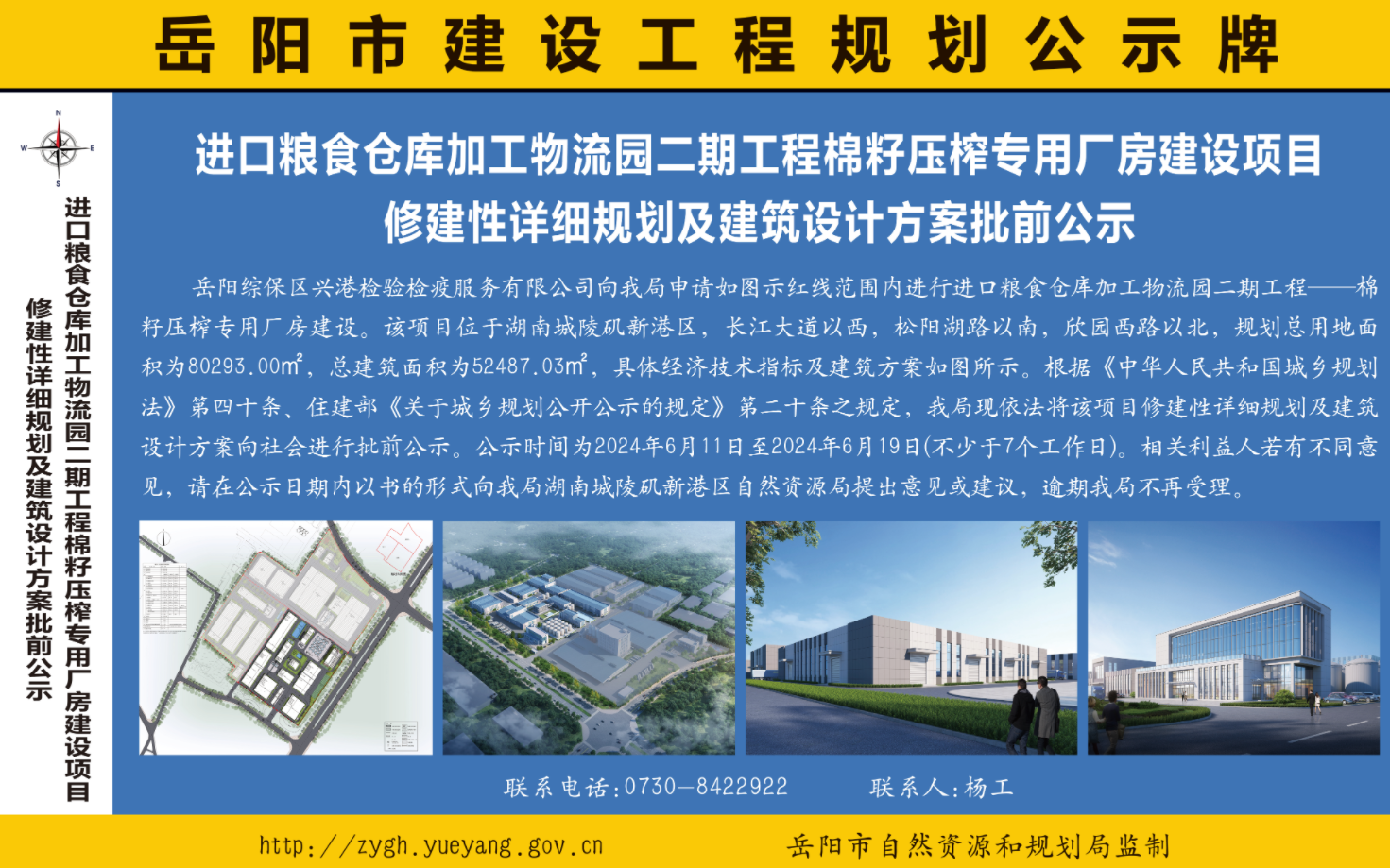 进口粮食仓库加工物流园二期工程棉籽压榨专用厂房建设项目修建性详细规划及建筑设计方案批前公示