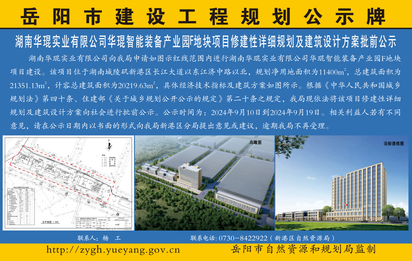湖南华琨实业有限公司华琨智能装备产业园F地块项目修建性详细规划及建筑设计方案批前公示