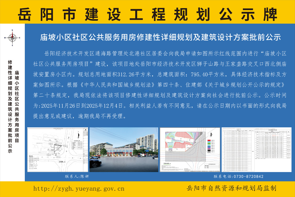 庙坡小区社区公共服务用房项目修建性详细规划及建筑设计方案批前公示