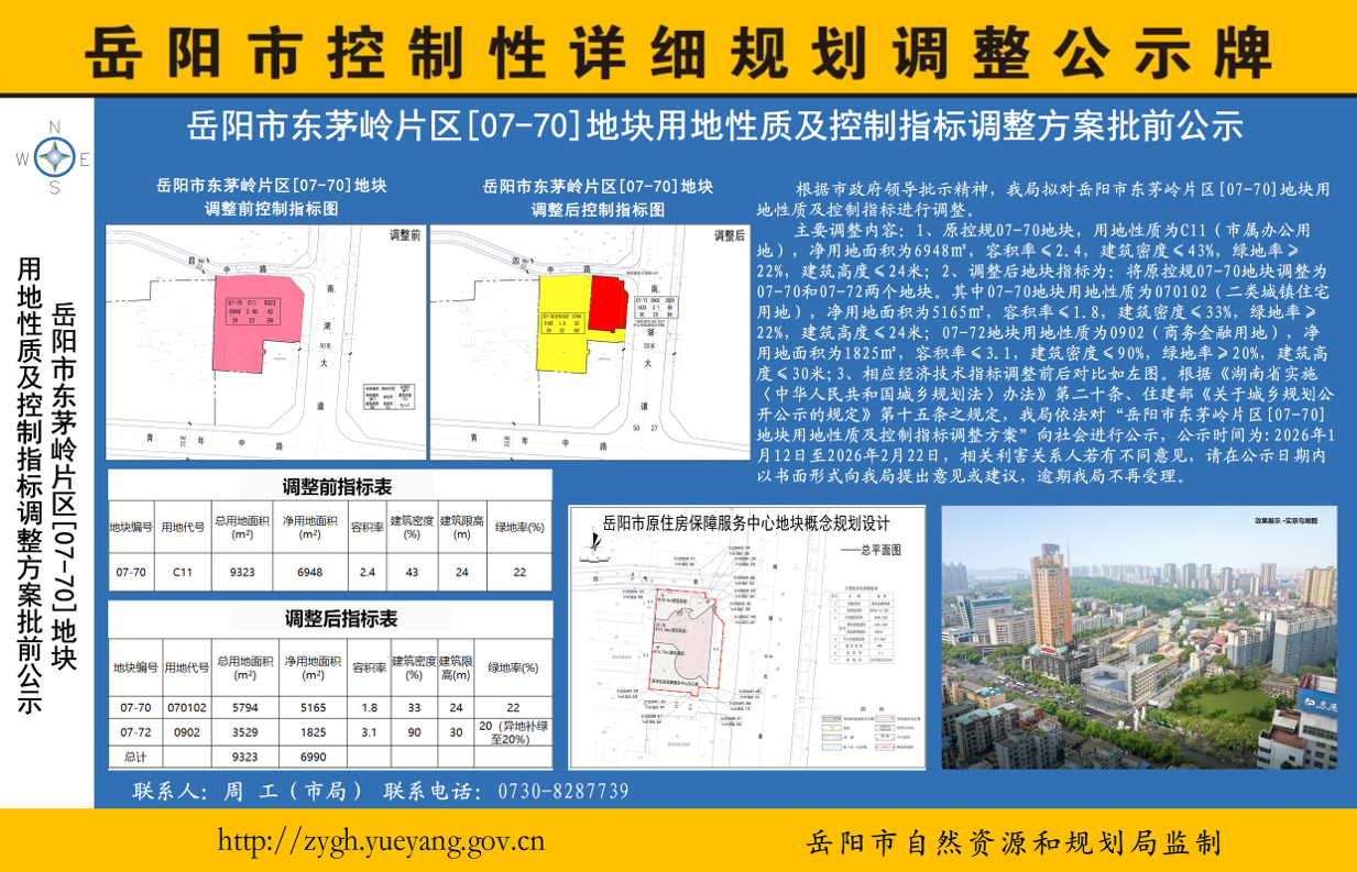 岳阳市东茅岭片区【07-70】地块用地性质及控制指标调整方案批前公示