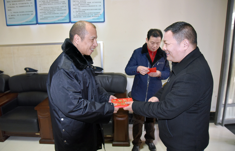 2月13日(腊月二十八)上午,胡辉、周治中前往门卫值班室、收发室、地下设备机房看望慰问春节值班人员,办公室相关负责人陪同。