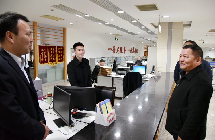 2月14日(腊月二十九)上午,胡辉、李志宏前往不动产登记窗口、行政审批办窗口、档案馆窗口看望慰问窗口工作人员,不动产登记中心、档案馆相关负责人陪同。