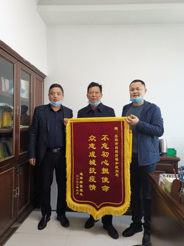 4月2日,通海路管理处和八字门社区分别将写有“不忘初心担使命,众志成城抗疫情”的锦旗和“阻击疫情勇当先,尽职尽责担使命”的锦旗送到岳阳市自然资源和规划局,代表管理处工作人员和社区居民,向我局在新冠肺炎疫情期间参与社区值守和督导检查的工作人员表示衷心的感谢和诚挚的问候。