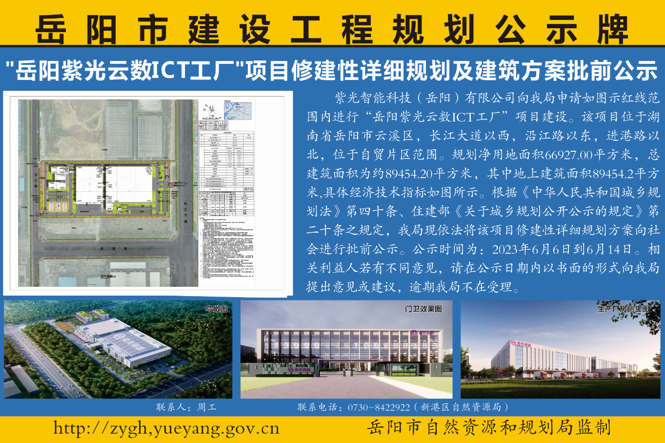 “岳阳紫光云数ICT工厂”项目修建性详细规划及建筑方案批前公示