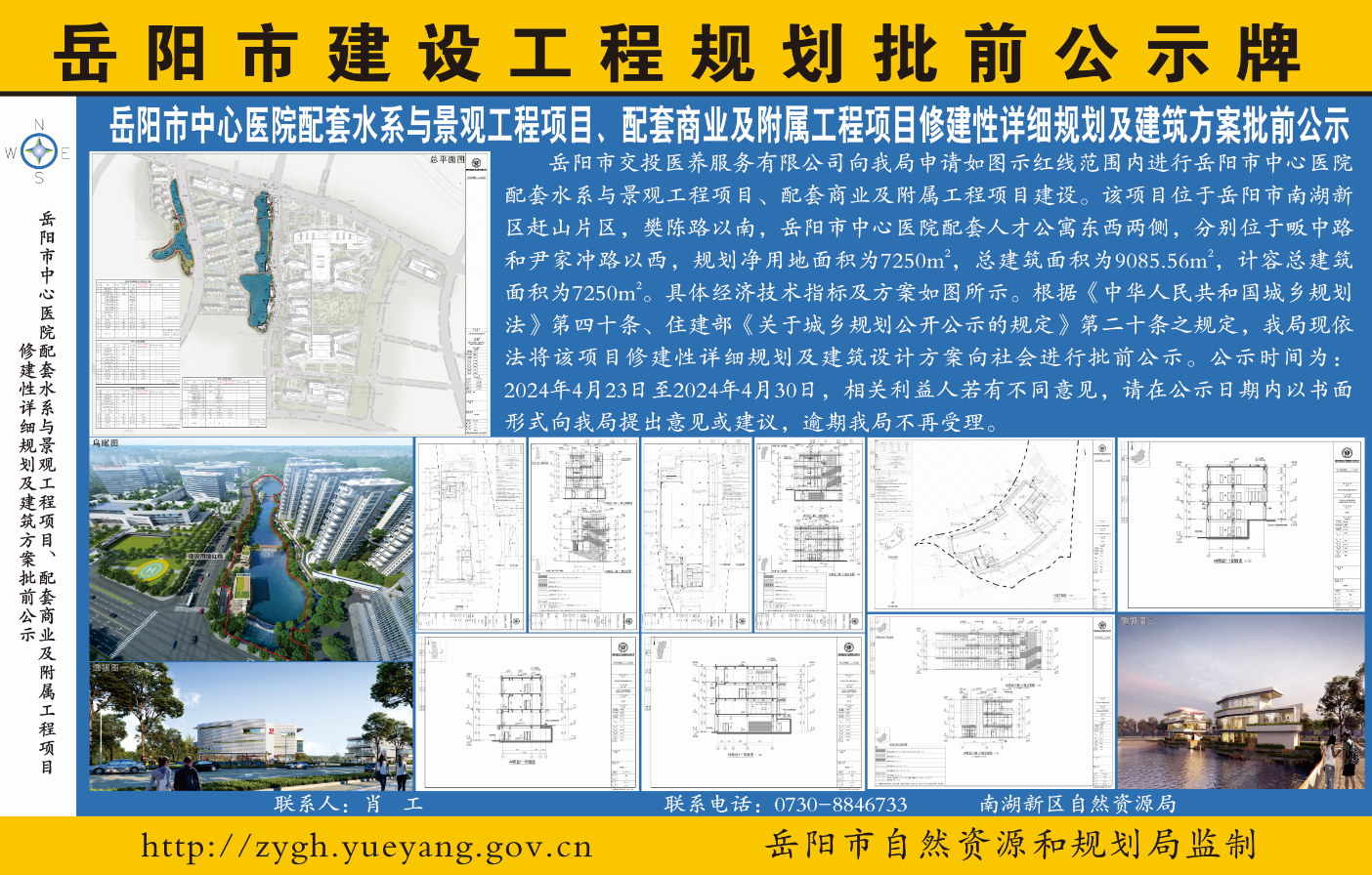 岳阳市中心医院配套水系与景观工程项目、配套商业及附属工程项目修建性详细规划及建筑方案批前公示