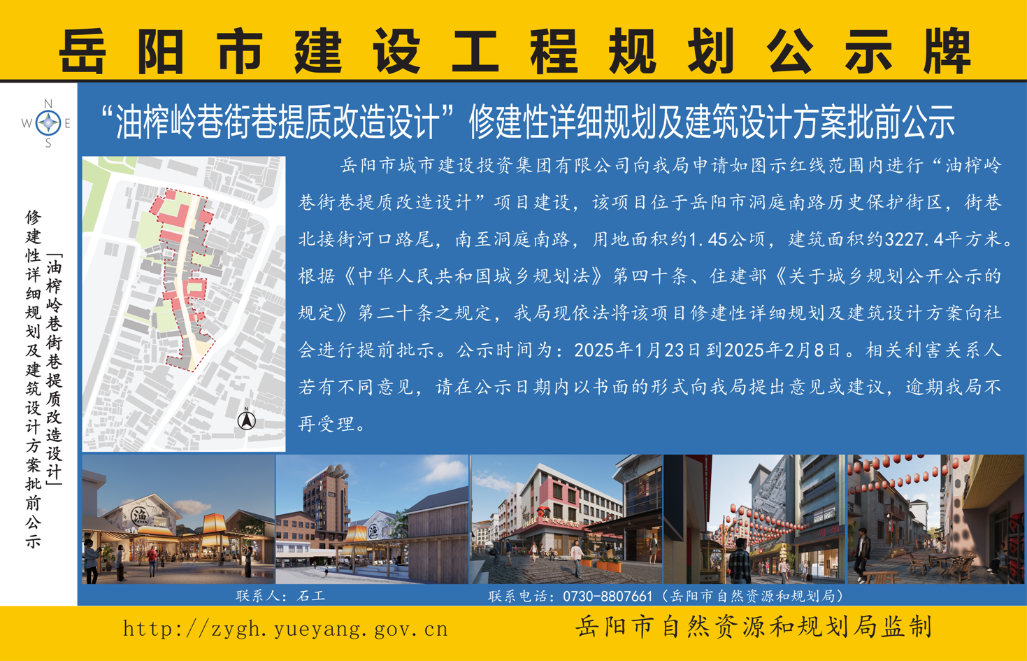 “油榨岭巷街巷提质改造设计”修建性详细规划及建筑设计方案批前公示