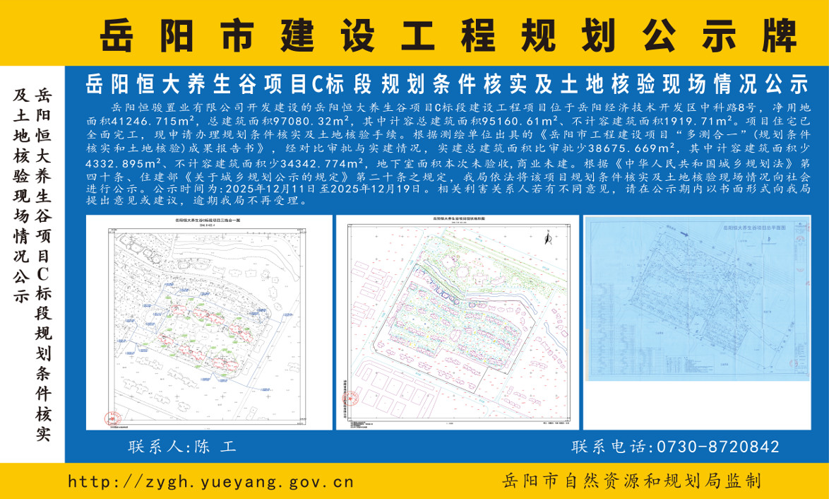 岳阳恒大养生谷项目C标段规划条件核实及土地核验现场情况公示