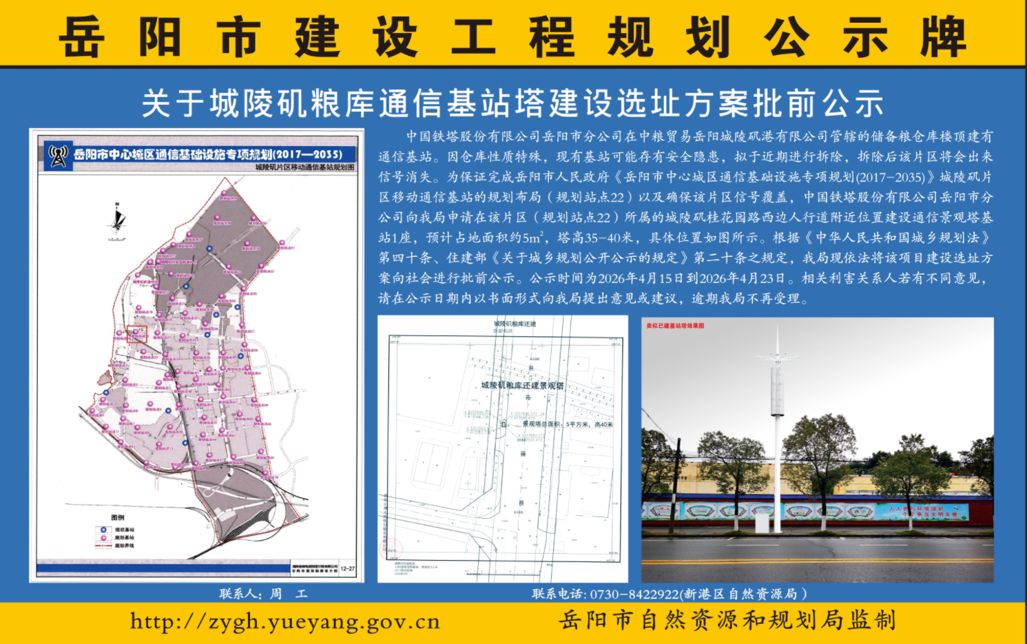 关于城陵矶粮库通信基站塔建设选址方案批前公示