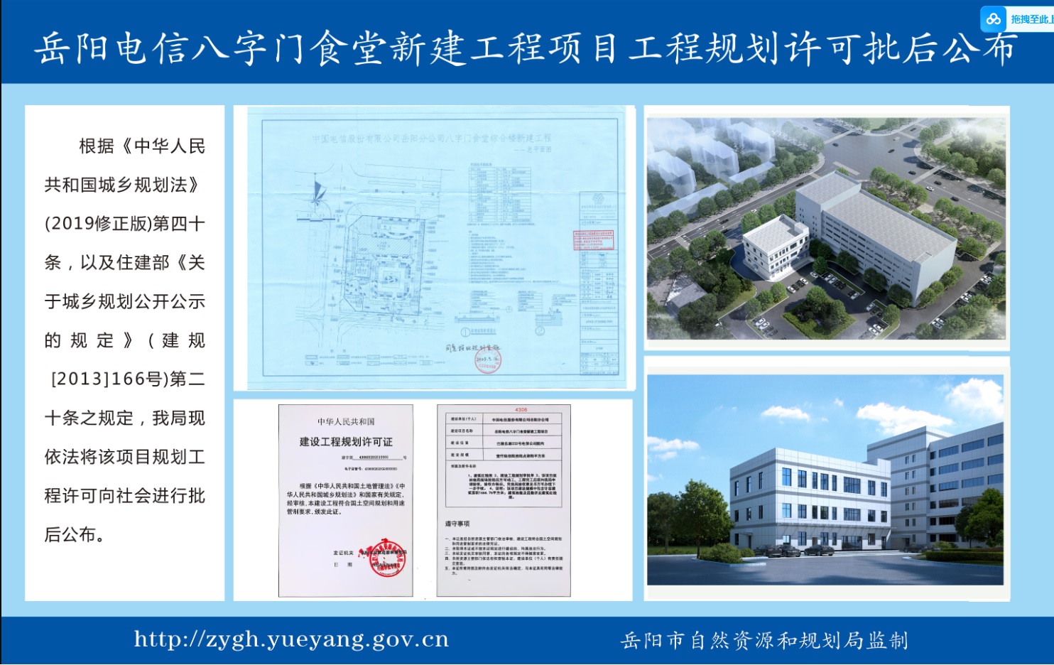 岳阳电信八字门食堂新建工程项目工程规划许可批后公布