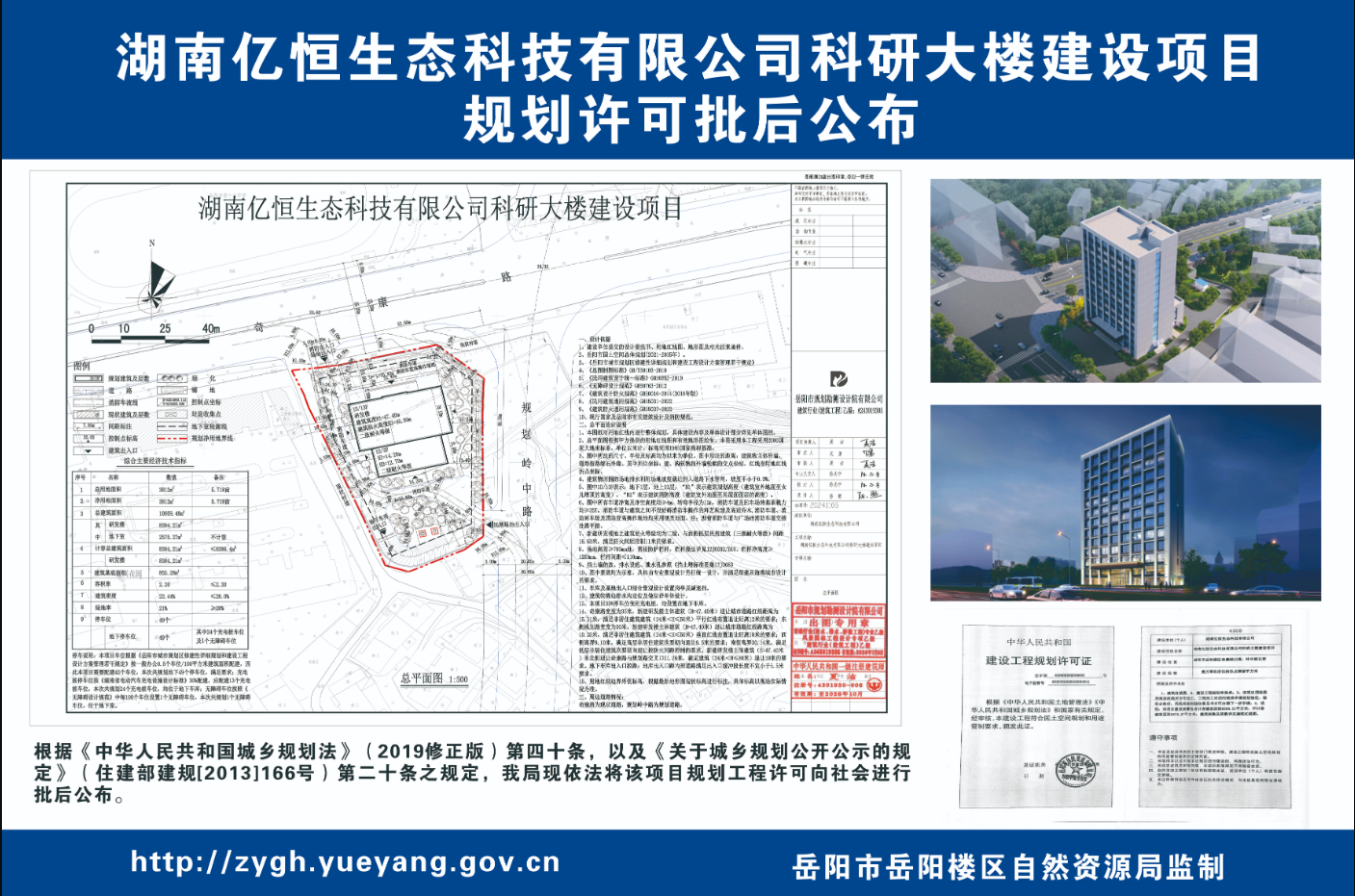 湖南亿恒生态科技有限公司科研大楼建设项目规划许可批后公布