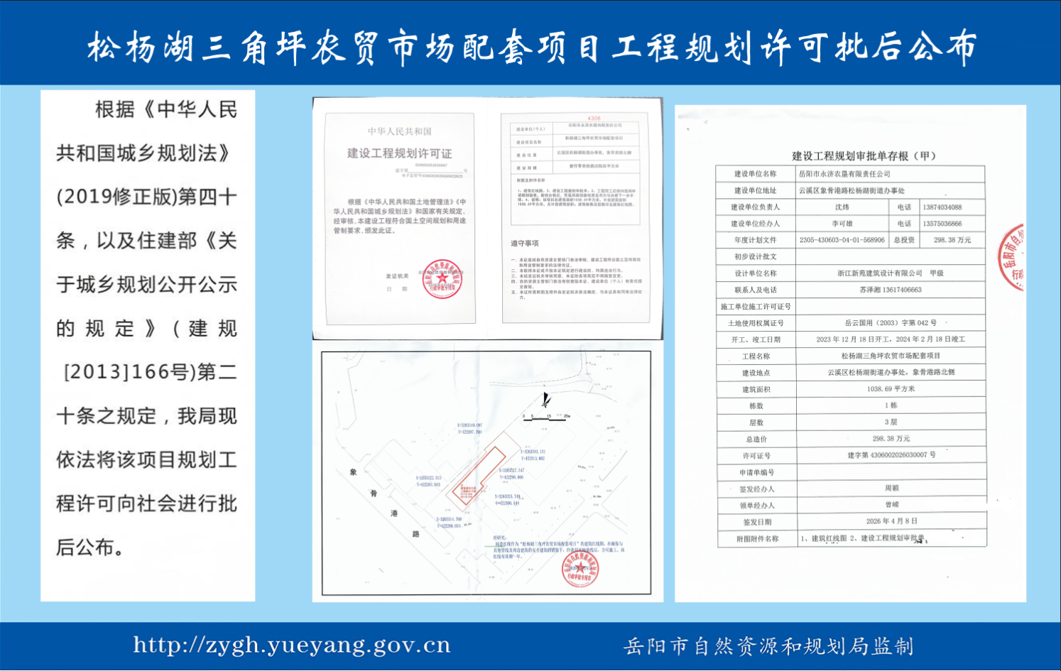 松杨湖三角坪农贸市场配套项目工程规划许可批后公布