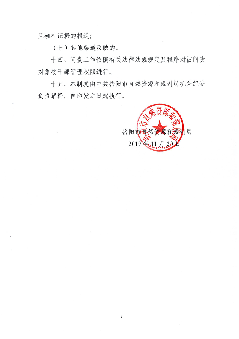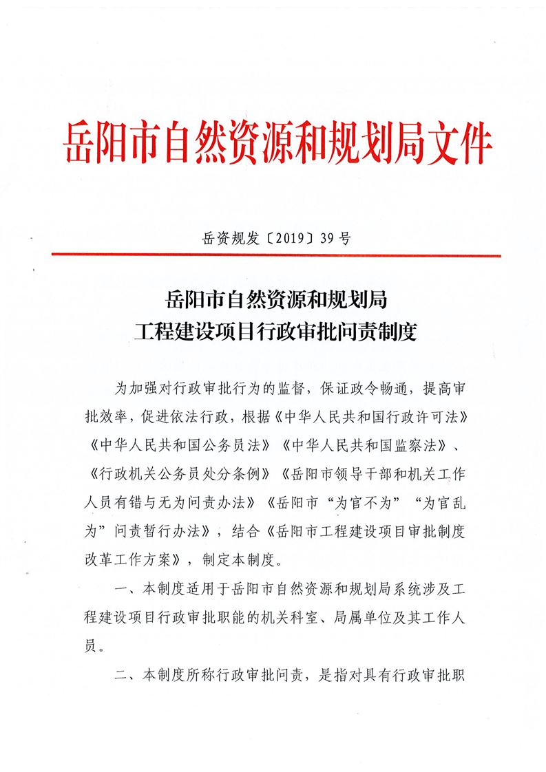 岳阳市自然资源和规划局工程建设项目行政审批问责制度