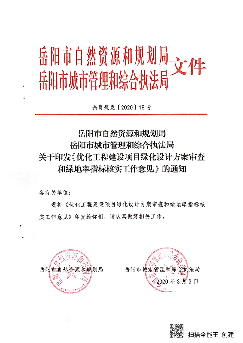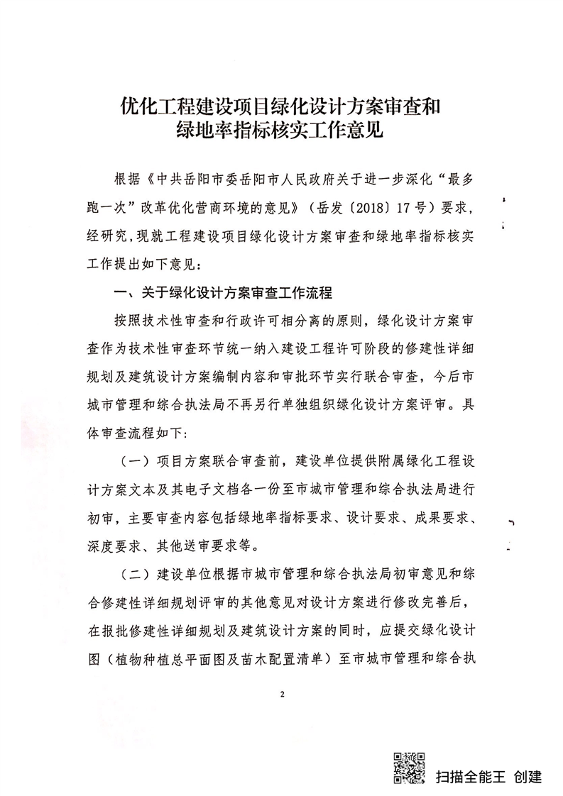 关于印发《优化工程建设项目绿化设计方案审查和绿地指标核实工作意见的通知》