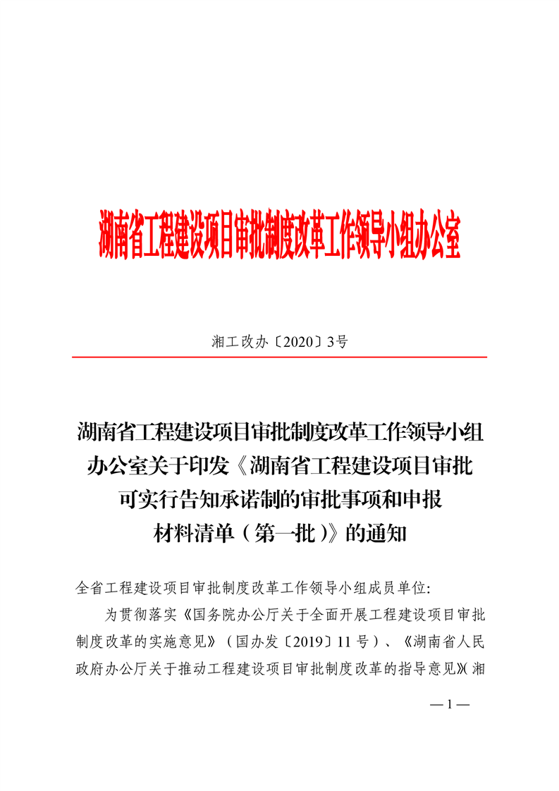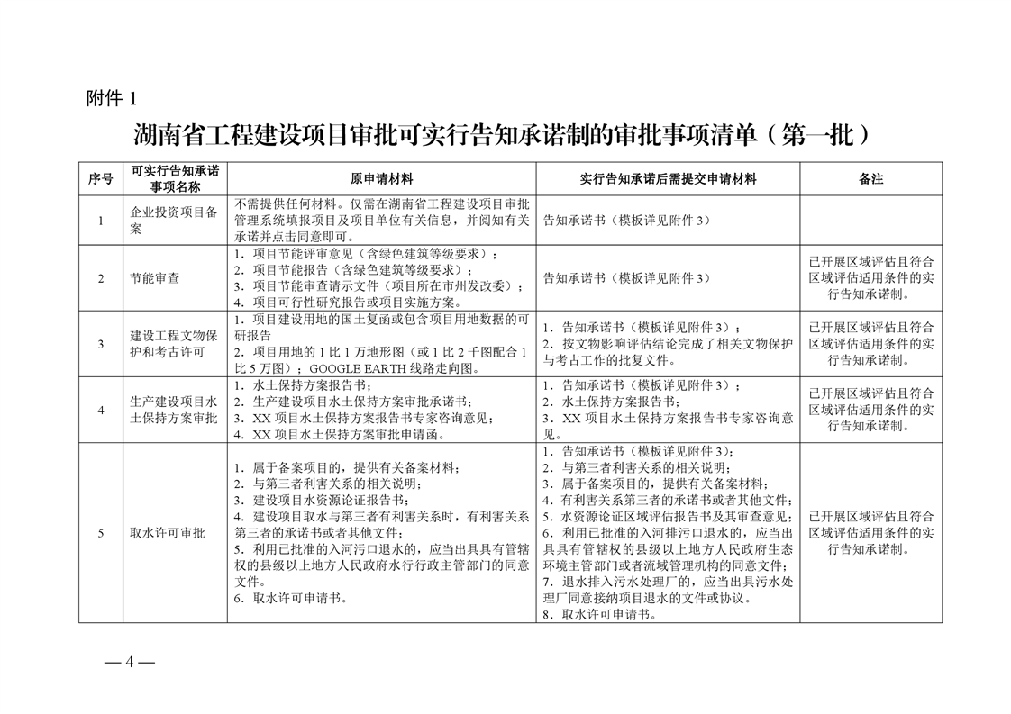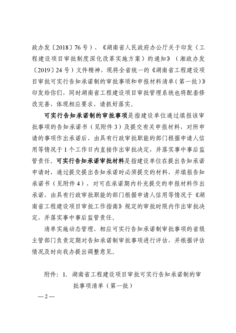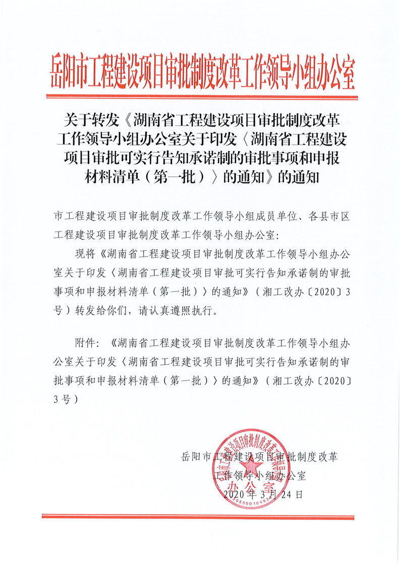 关于转发《湖南省工程建设项目审批可实行告知承诺制的审批事项和申报材料清单(第一批)》的通知
