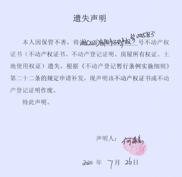 遗失声明(何添意)
