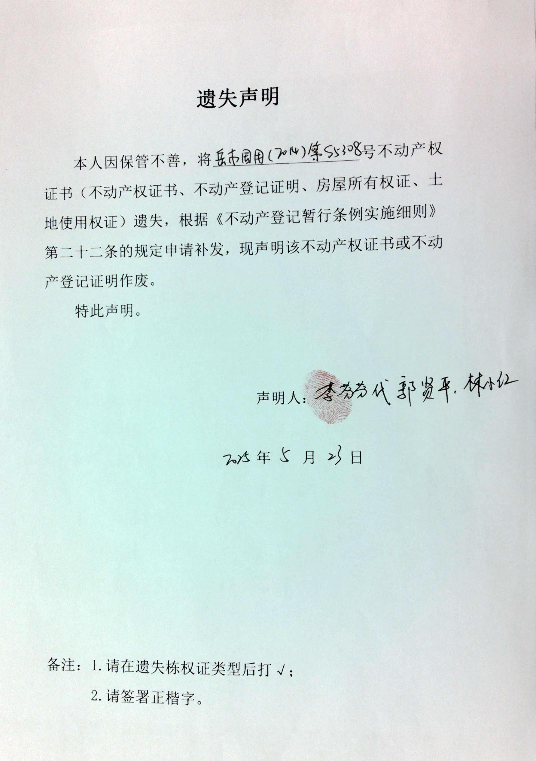 遗失声明(郭贤平、林小红)1